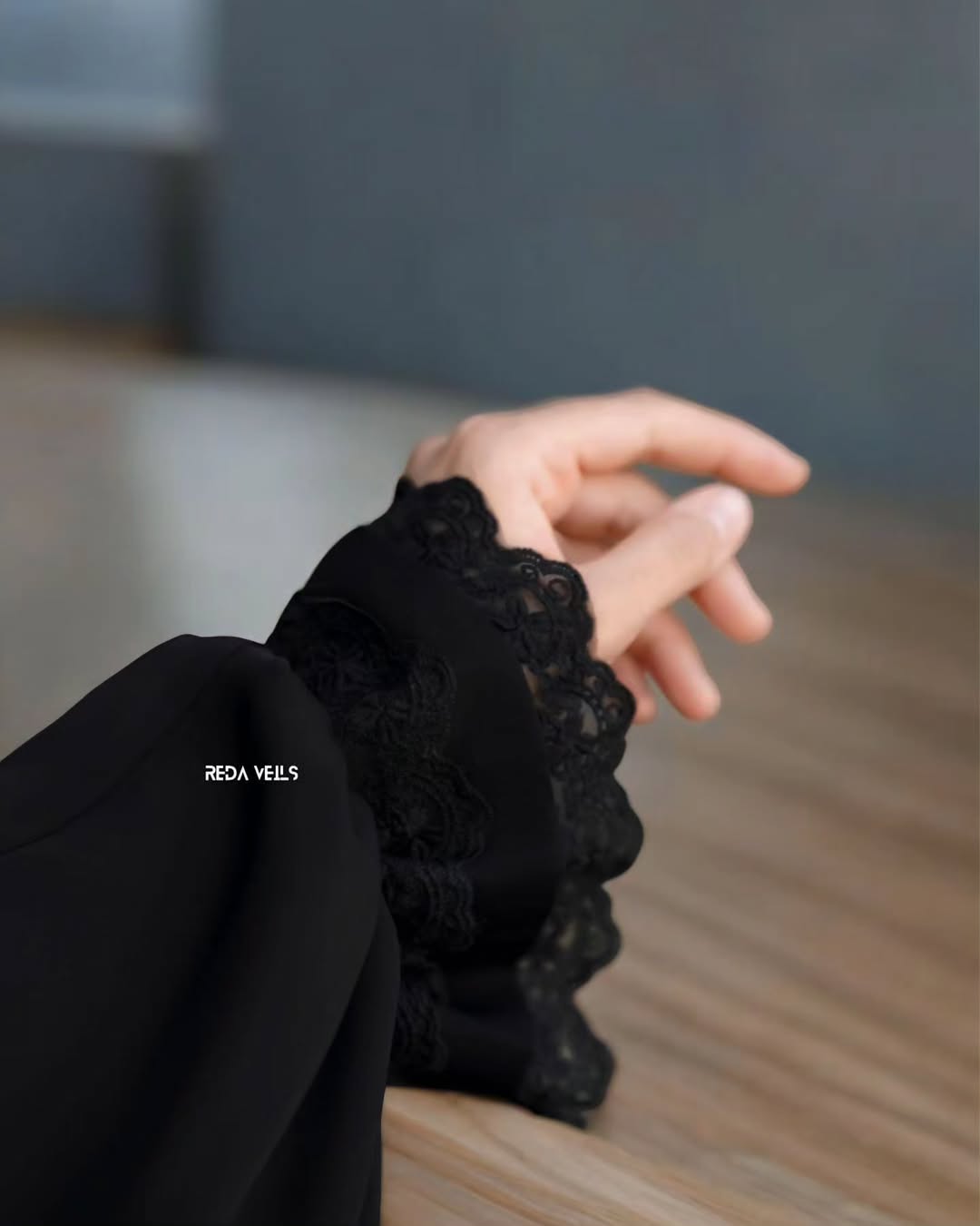 Black Iraqi Chadar with Lace on Designer Sleeves